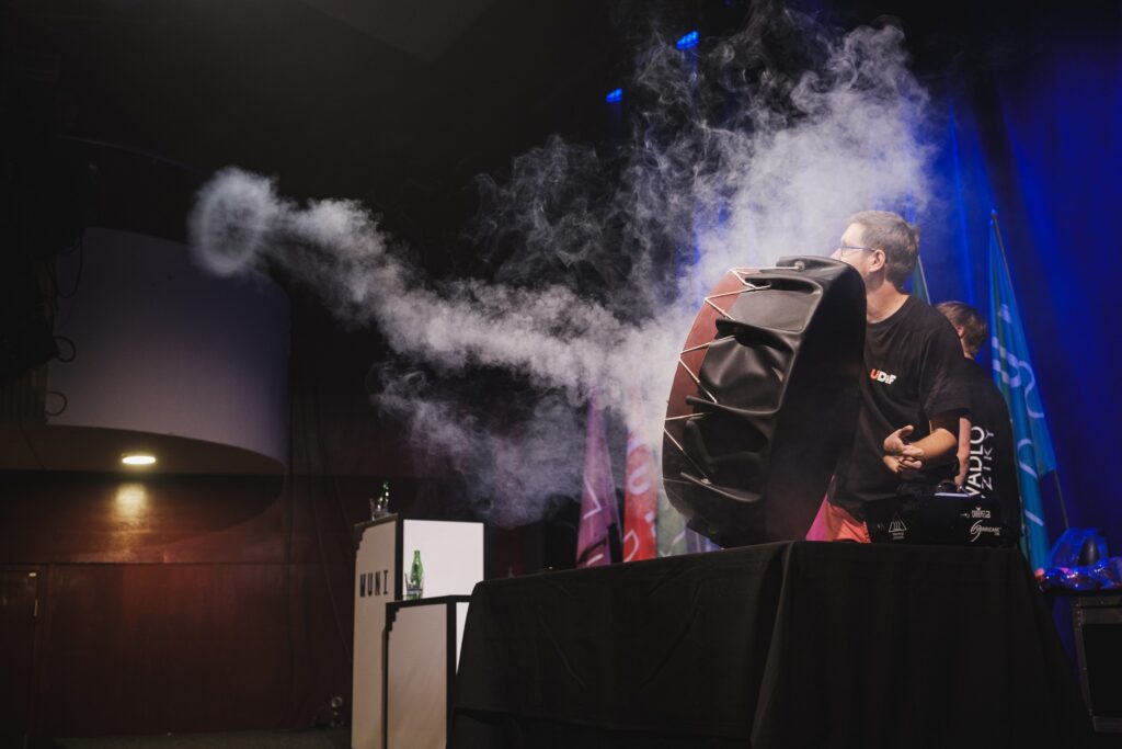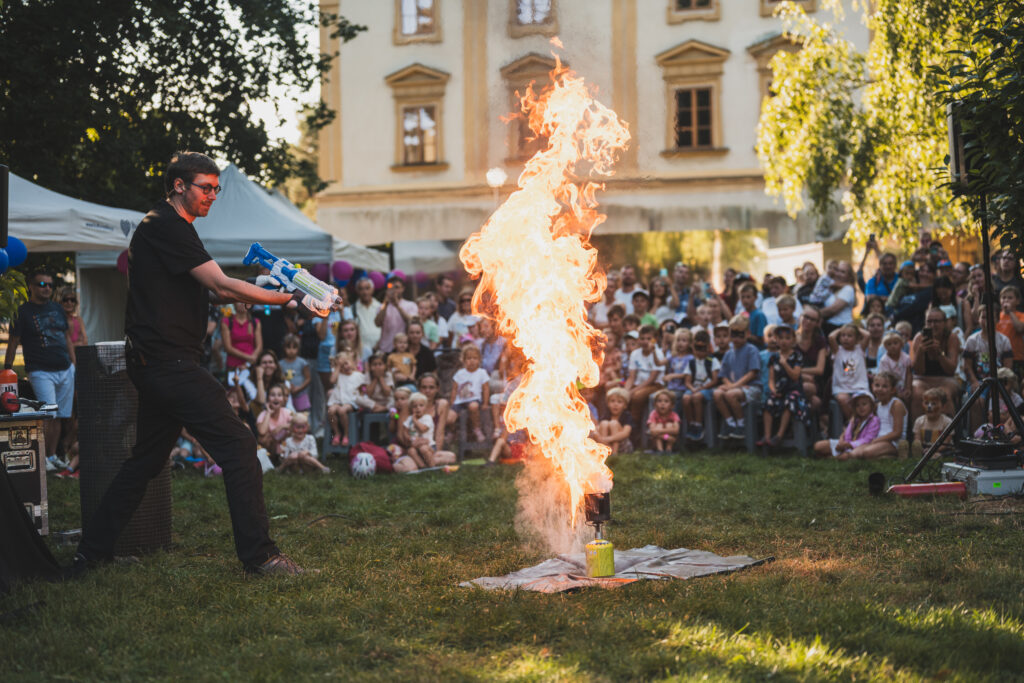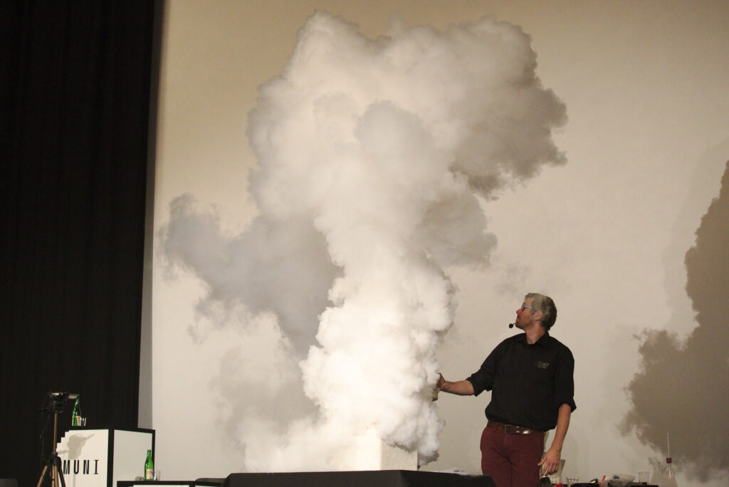 Nejvíc dělám vystoupení na pódiu – něco mezi vědeckou přednáškou a stand-upem. Stánky s pokusy, kde jsme v blízkém kontaktu s lidmi, mě taky baví moc. Jezdíme i po školách a školkách, ale taky na firemní akce a večírky. Občas se dostaneme na docela zajímavá místa – už jsem dělal pokusy v kostele, synagoze, v domově pro seniory nebo na ortopedickém oddělení v nemocnici.